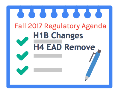 Fall 2017 Regulatory Agenda Items on H1B, CPT/OPT, H4 Visa EAD, Fee